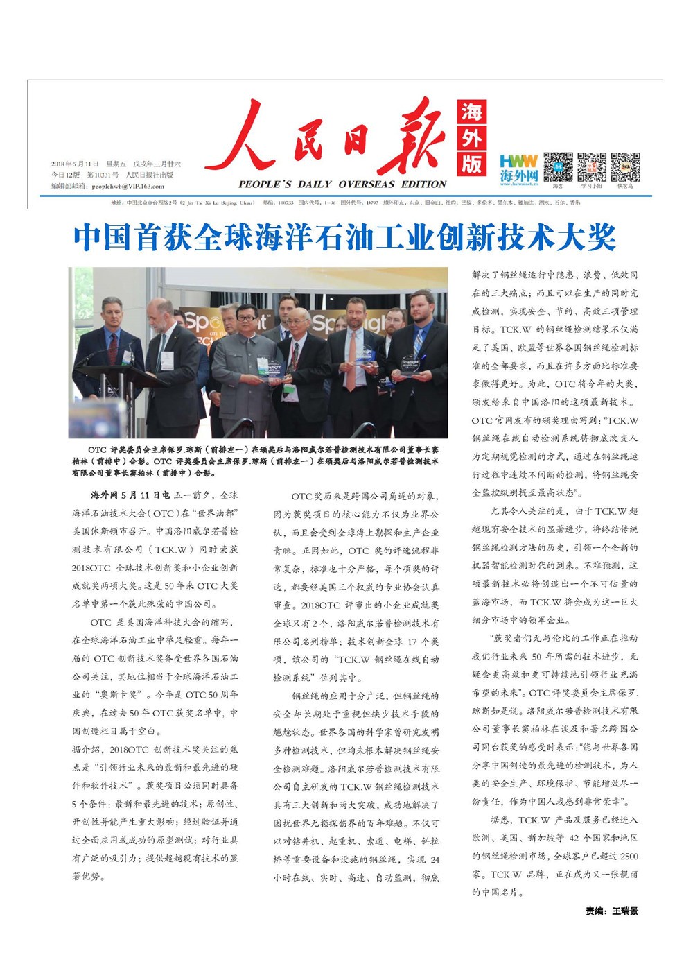 下一篇: 《新華社報(bào)道:TCK.W榮獲美國(guó)OTC技術(shù)創(chuàng)新獎(jiǎng)》